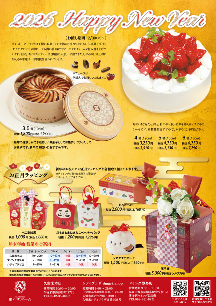 久留米本店・マイング博多店は1月2日から、スマートショップシティプラザ店は月4日から営業いたします。