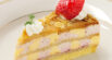 ヨーグルトとブルーベリームース組み合わせ。甘さがとっても控えめのさっぱりとしたケーキです。