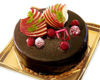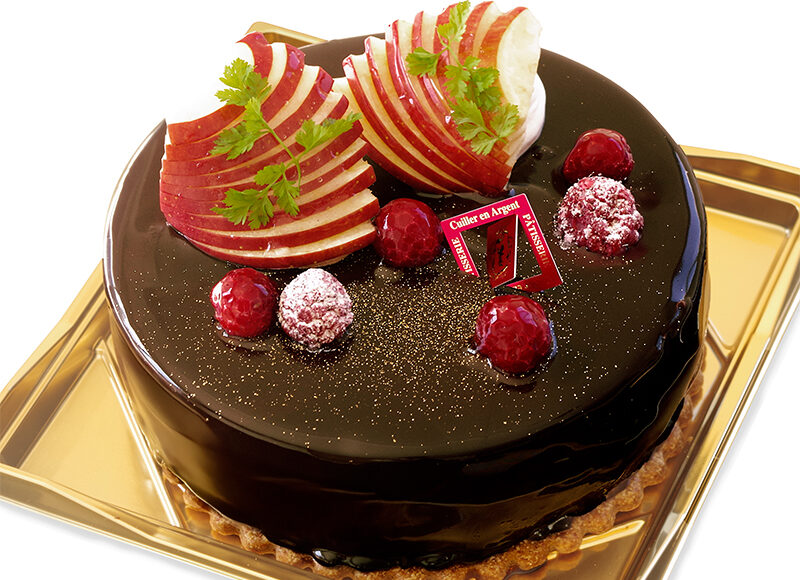 スポンジの上に、チョコレートムースと木苺のムースを順に流し、グラサージュショコラでコーティングしました。酸味のある木苺のムースと甘くコク深いチョコレートのハーモニーが楽しめる人気の逸品です。